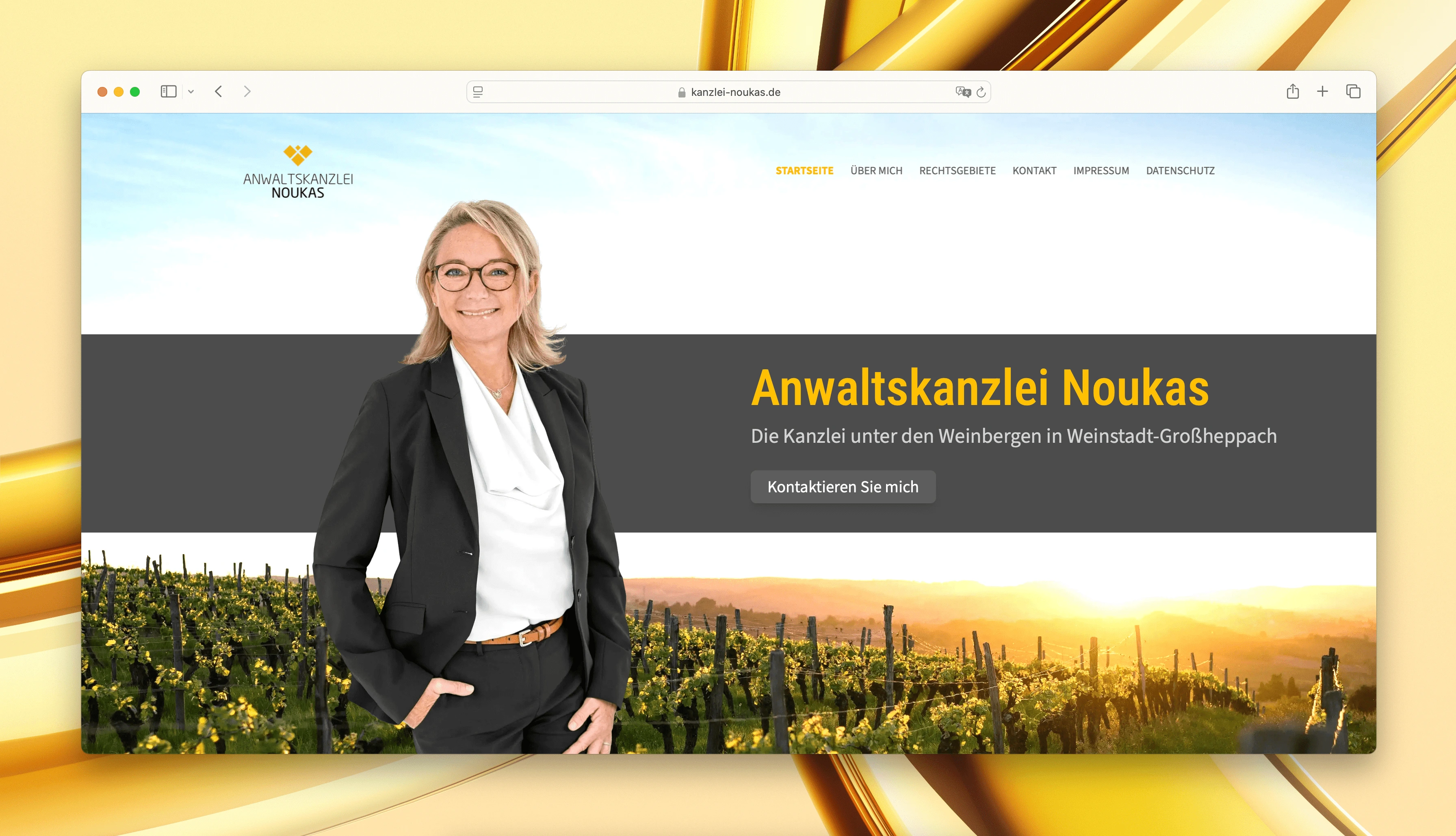 Anja Lautenschlager-Noukas is a respected lawyer in Weinstadt who sought a website that would reflect her professionalism and make her services accessible to a modern audience. The existing website, last updated in 2008, needed a complete overhaul to meet current design and usability standards.